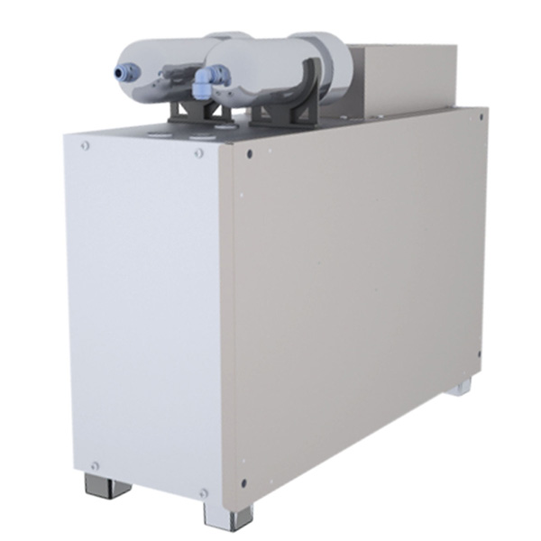 Naprava za mehčanje vode z sistemom inverzne ozmoze s črpalko za peči serije Bakertop. Delovanje naprave nadzoruje kontrolna plošča peči.
