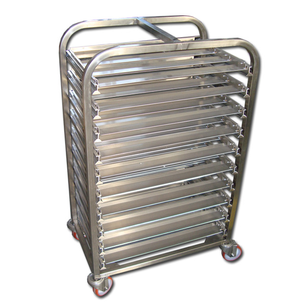 Voziček za 10 aparatov za krofe za fritezo FP24. Voziček je izdelan iz nerjavečega jekla. (aparati niso priloženi)