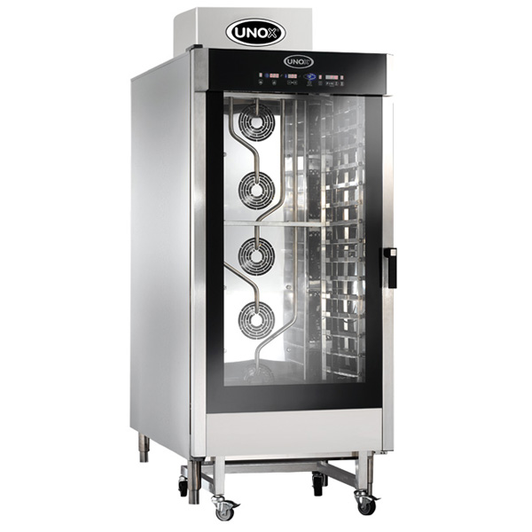 Ventilatorji oblikovani v UNOX-u zagotavljajo popolno enakomernost pečenja na vseh pekačih, od spodnjega do najvišjega. Avtomatsko spreminjanje smeri vrtenja, kombinirano z ventilatorji visokih hitrosti, zagotavljajo popolno enakomernost na vsakem pekaču.